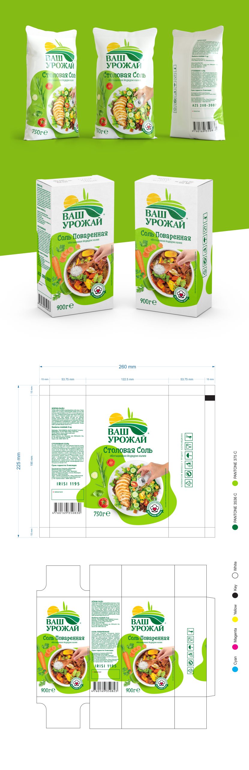 Whether it’s a pinch of fine Table Salt to finish a fresh salad, or a generous sprinkle of Cooking Salt to season a family meal, ВАШ УРОЖАЙ stands for quality you can feel in every grain. The packaging design combines clean minimalism with a warm, inviting look, celebrating both simplicity and the richness of real food.